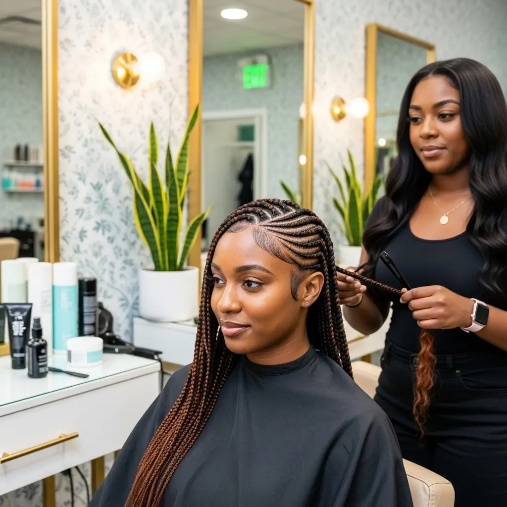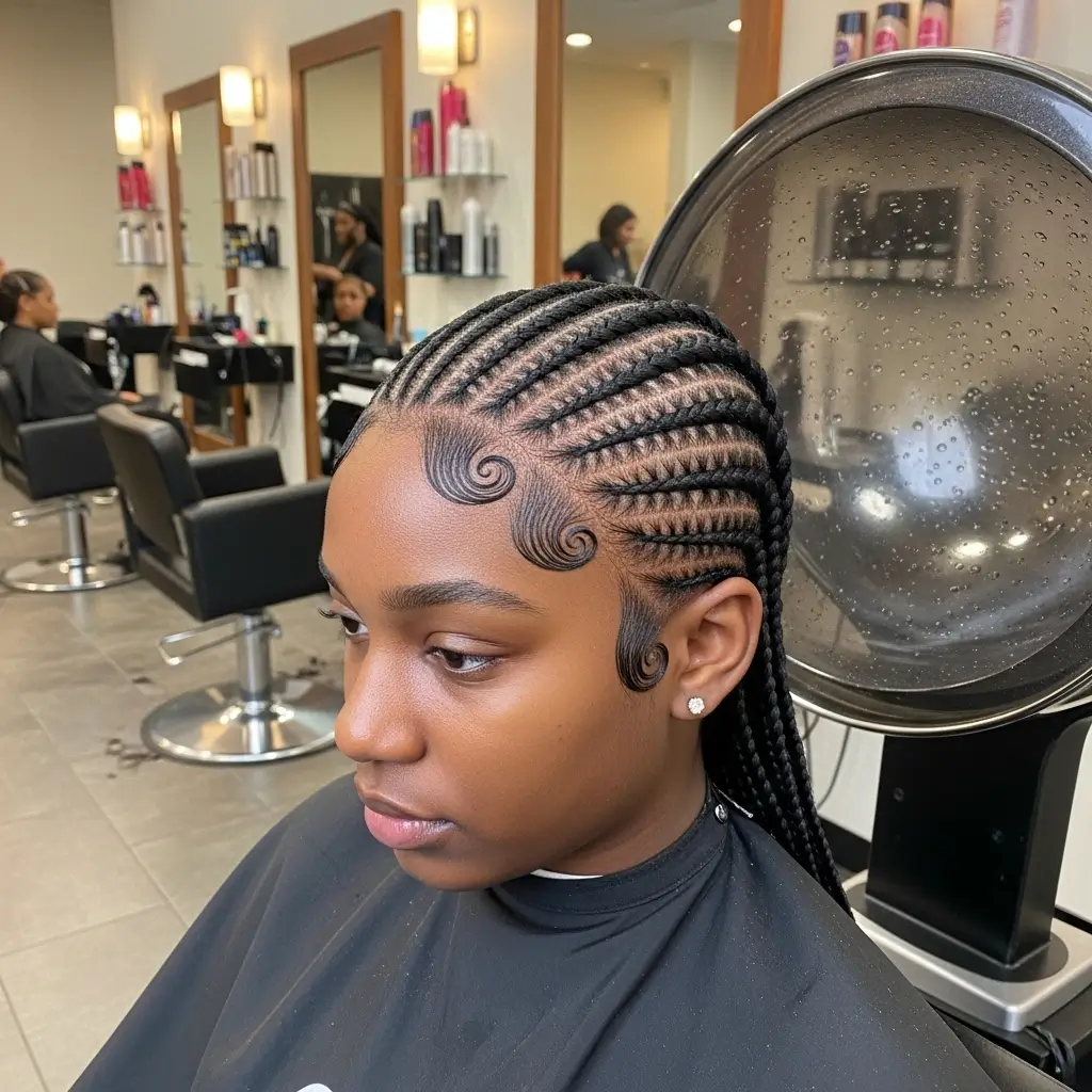 We’re seeing zigzag parts, curved designs, and even cornrows that spell out words. Your scalp becomes a canvas, and your braider becomes Picasso.