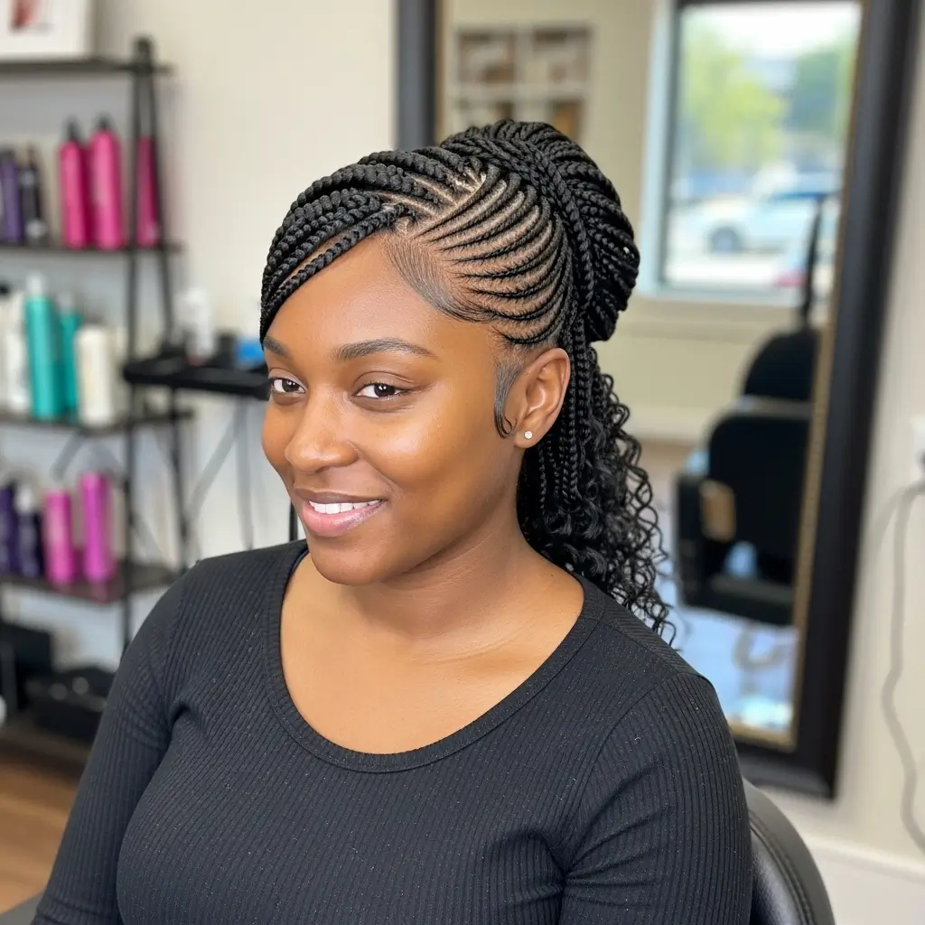 The magic happens in the construction. Your braider creates a base of cornrows or flat twists that lead up to the bun, ensuring everything stays secure while looking effortless.