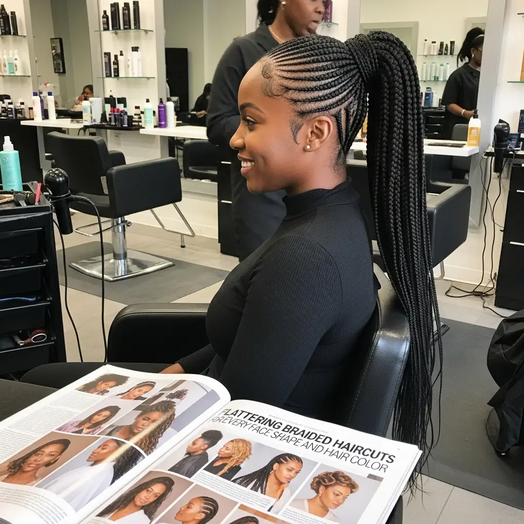 Ready for a style that screams “I mean business”? Long feed-in braids styled into a ponytail give you that sleek, polished look that works for everything from board meetings to brunch dates.