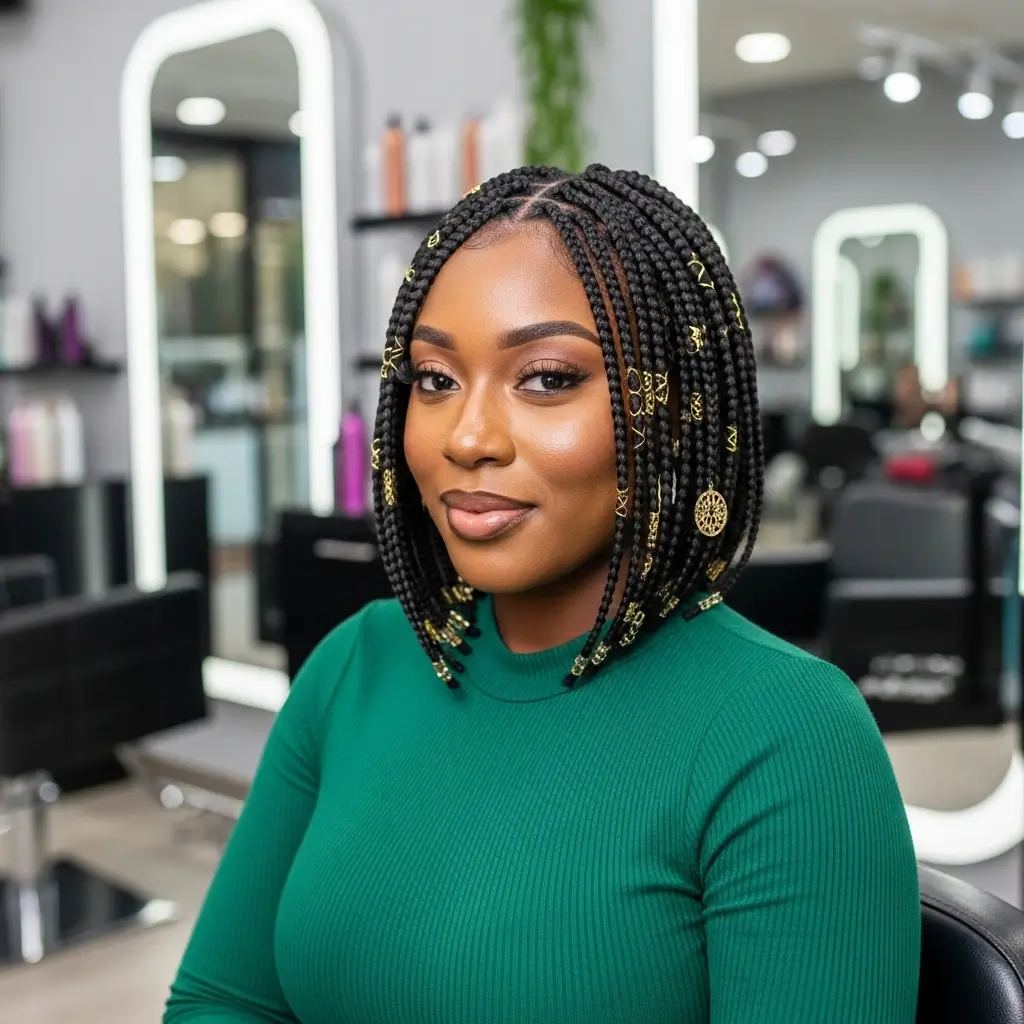 Short hair, don’t care? The braided bob is here to prove that length isn’t everything. This style hits right at your jawline or shoulders, giving you all the sass without the maintenance of longer braids. Plus, gold accessories? That’s how you turn a simple bob into a statement piece.