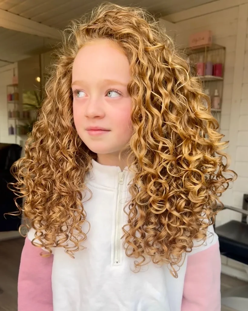 Last but definitely not least, we have the stunning golden blonde curl look that catches light like sunshine. Whether your child is naturally blonde or you’ve enhanced their color with lightening services, these warm golden tones create a luminous effect that makes curls look absolutely magical.