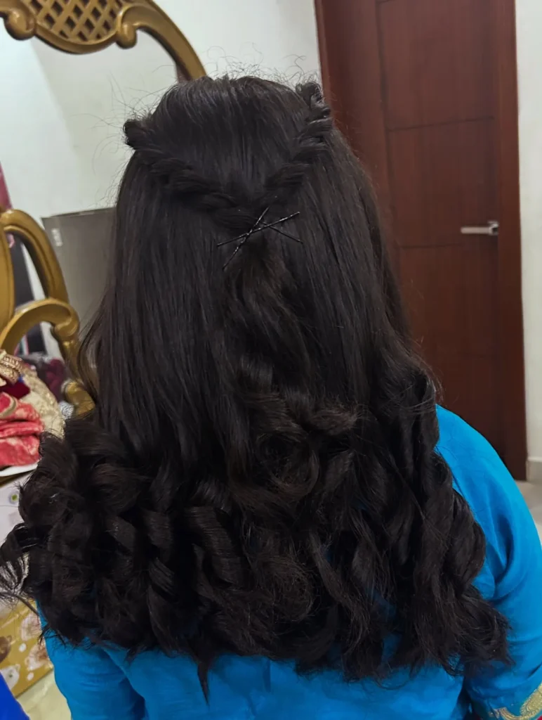 The execution couldn’t be more straightforward, yet the results are stunning. Take a small section of hair from the crown area—just enough to get your hair away from your face. Smooth it back gently (you can leave it slightly textured if you prefer a more casual vibe) and secure it at the back of your head with two bobby pins arranged in an X pattern. That’s it. The beauty is in the simplicity and the gorgeous, glossy waves throughout the rest of the hair. The deep, rich black color shown here looks absolutely luxurious, and those voluminous curls add serious wow-factor. @naureen_makeup_artistry proved that sometimes the most minimal approach creates the most maximum impact. The key to making this simple style work is ensuring your hair is in great condition—healthy, shiny hair makes even the most basic styles look expensive.