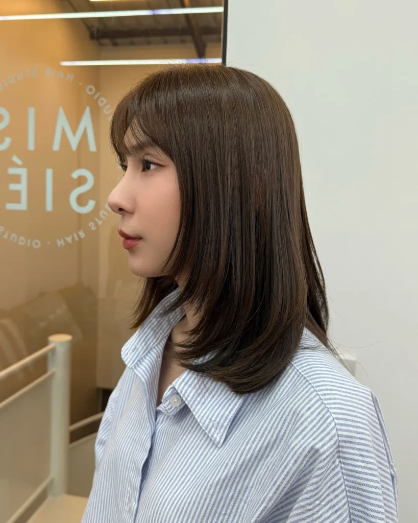 @missiehairstudio shows us how a straight, polished style can look incredibly chic on medium-length hair. There’s something so sophisticated about hair that’s been perfectly smoothed and straightened, especially when paired with those face-framing bangs. The rich, dark color adds to the overall sleek aesthetic, creating a look that’s modern and timeless all at once.