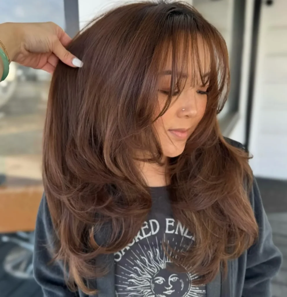 What makes this style so special is how effortlessly chic it looks. The layers are cut in a way that creates natural volume without requiring tons of styling product or time with a blow dryer. @hairbycatherinehoandchristianmsalon has mastered the art of creating layers that move beautifully whether you’re walking, turning your head, or just going about your day. The face-framing pieces are cut at just the right length to accentuate your features without overwhelming them.