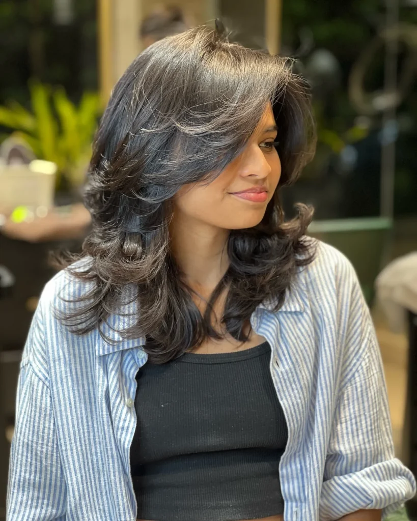 What we love about this style is how low-maintenance it is. @dhairyashil_d9_hair demonstrates that medium-length hair doesn’t need to be perfectly styled to look amazing. The slightly undone texture actually makes it feel more modern and approachable. The subtle highlights woven throughout add even more dimension and catch the light beautifully as you move.