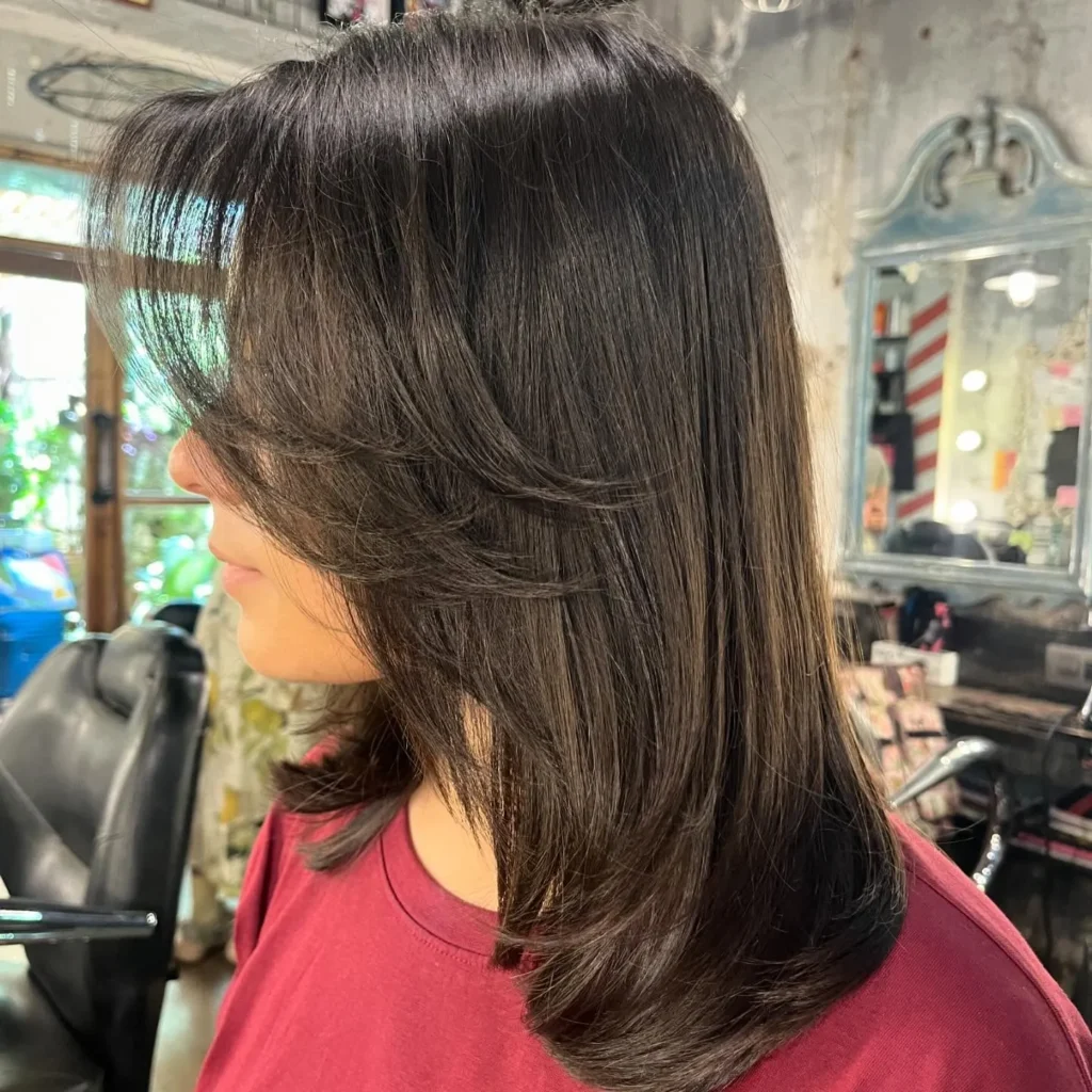 This style is incredibly versatile and works beautifully whether you wear it straight, wavy, or curly. The layers remove bulk without sacrificing length, making it ideal for thick hair. To style, blow-dry with a round brush, working section by section and directing the brush under the hair to create that beautiful outward flip at the ends. The result is a timeless look that never fails to impress.