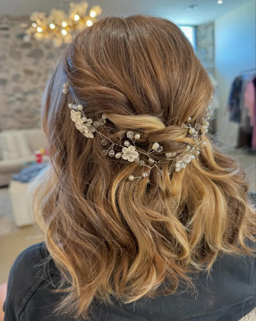Half-Up Elegance with Decorative Accents