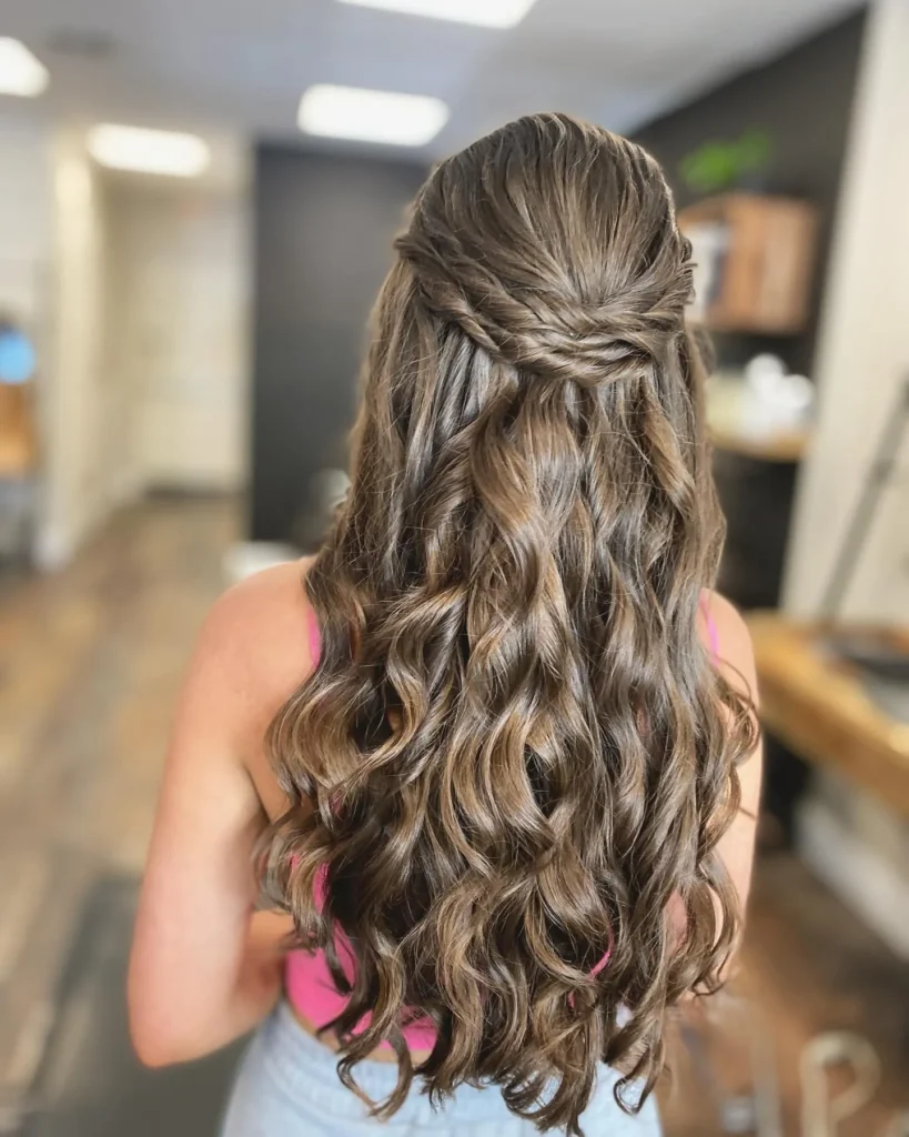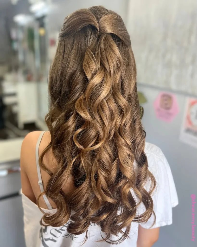 This style works beautifully with bohemian-inspired dresses, beach-themed proms, or if you’re just looking for something a bit more relaxed than traditional prom hair. The casual elegance of mermaid waves means you’ll look effortlessly stunning without appearing like you tried too hard.