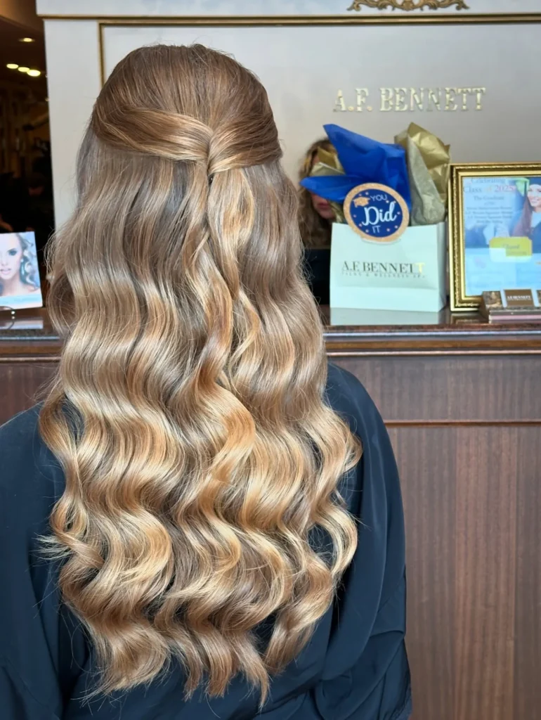 Bring inspiration photos to your hairstylist, but also be open to their professional suggestions based on your hair type, face shape, and dress style. They’ve seen countless prom hairstyles and know what works in real life versus just in photos.